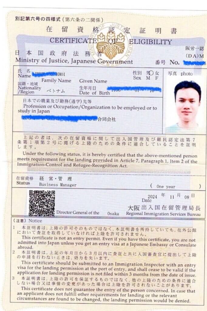 「経営・管理」VISAでは、おそらく関西初でしょう。